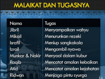Nama malaikat dan tugasnya sudah tertuang dalam surat-surat di Al Quran.
